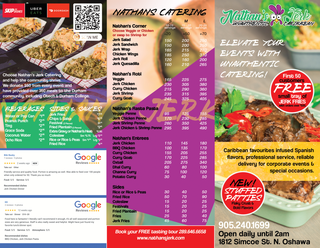 Welcome to Nathan's Jerk - Unauthentic Caribbean & Mexican, a culinary gem located at 1812 Simcoe St N, Oshawa. Here, you can immerse yourself in an enticing menu that marries the vibrant flavors of Caribbean and Mexican cuisine. The dishes are not just meals; they are experiences brimming with authenticity and taste.